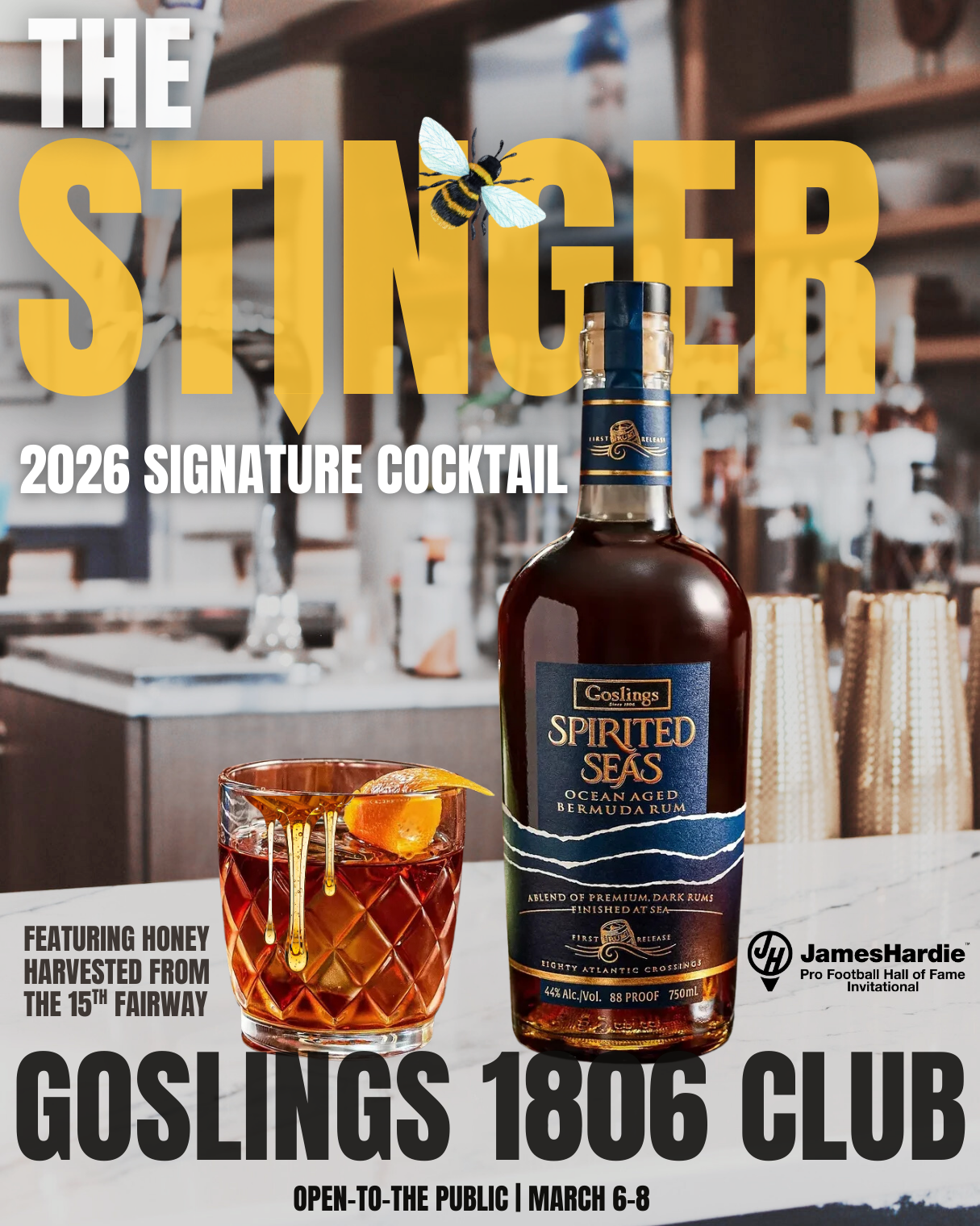 Open to all guests the Goslings 1806 Club offers a lively social setting with premium views and signature Goslings cocktails, including the Stinger made with Broken Sound Honey. Stop by, grab a drink, and soak in the energy of tournament week in one of the most popular gathering spots on course. You may even score Half-off cocktails if you receive a token